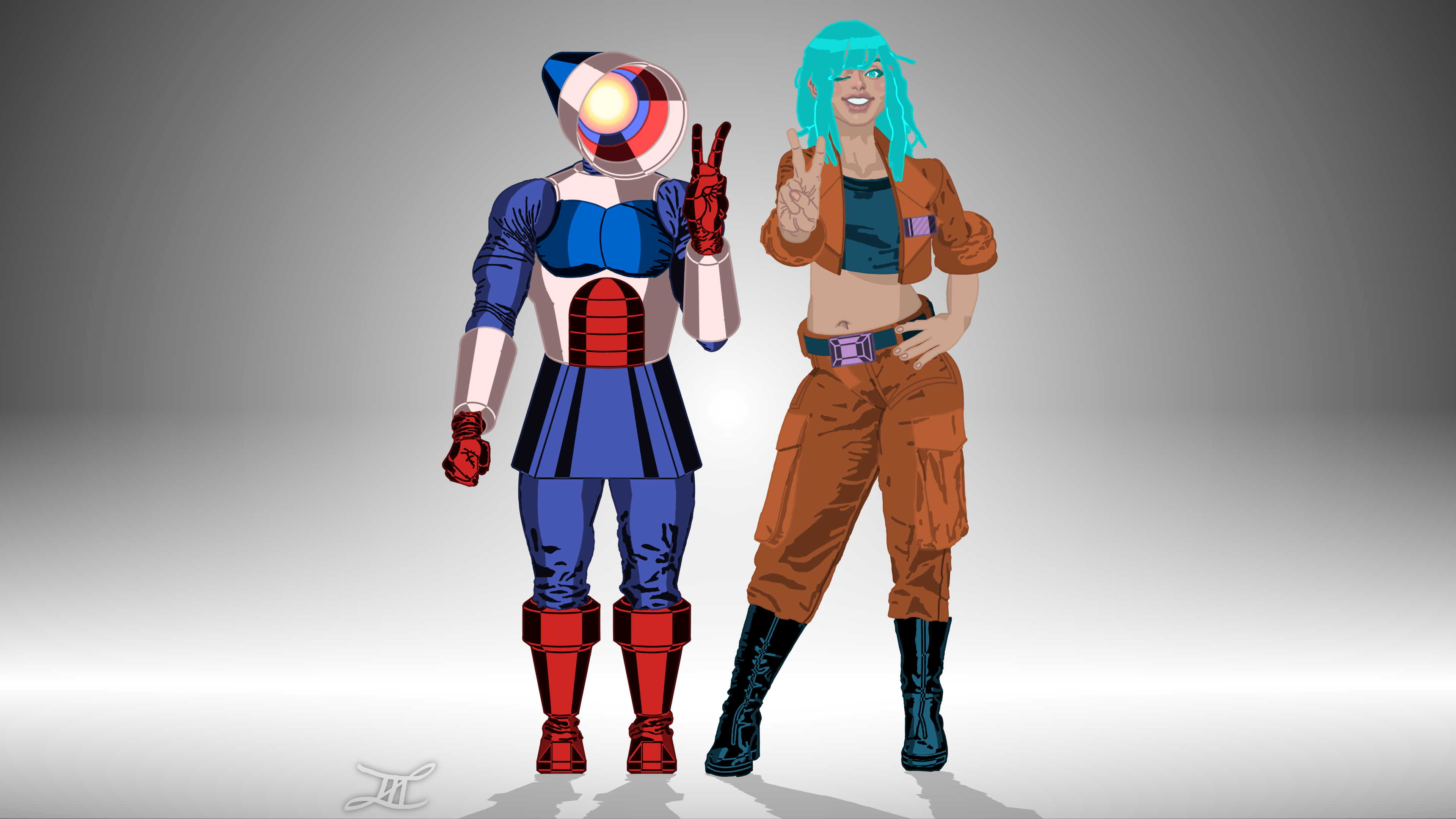 These 2.5 character illustrations of Headcannon and Professor J, the protagonists of the Headcannon Opening, I drew using the same process with which I animated them in Toon Boom Harmony.